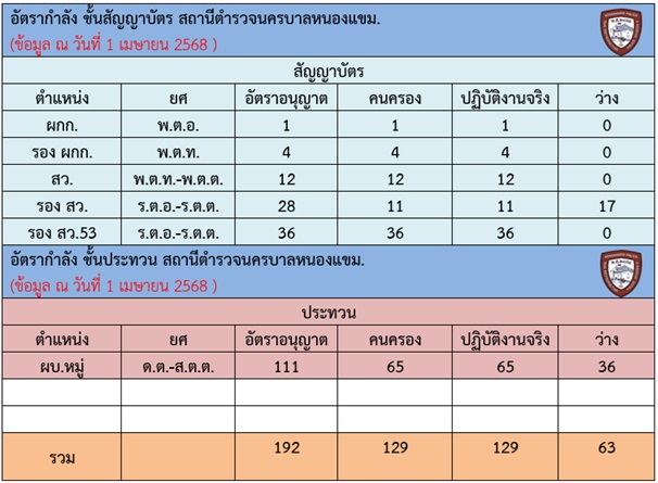 อัตรากำลัง อัพเดทข้อมูล 1 เมษายน 2568
