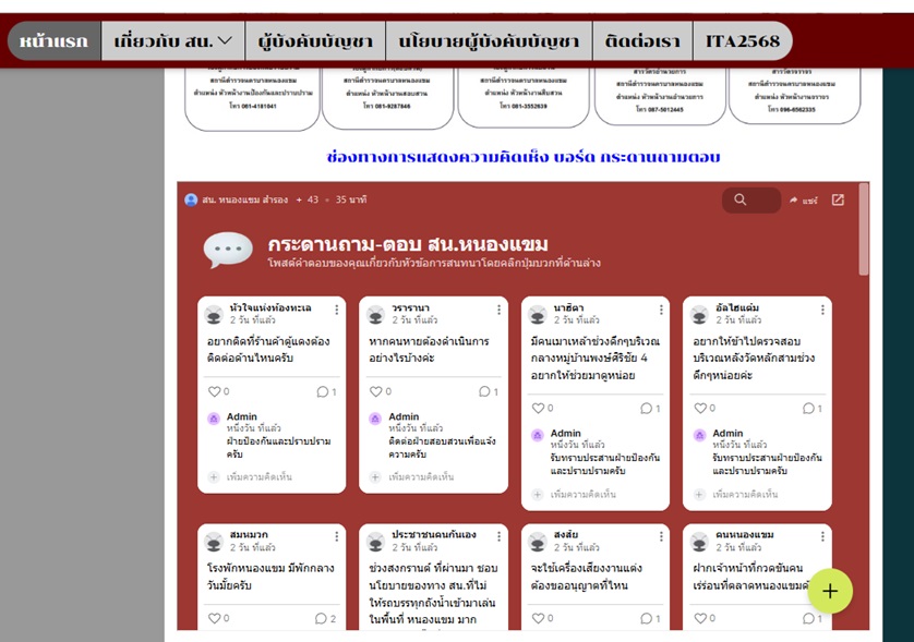 กระดานถามตอบที่อยู่หน้าเว็บไซต์